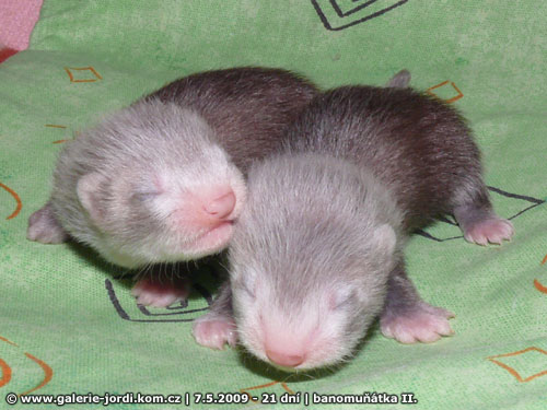 Maminka je Ajmi - BaNoMu Legacy of Ferrets (čokoládová s ponožkami) a tatínek je Apu Ferret Majestik (šampaňský).