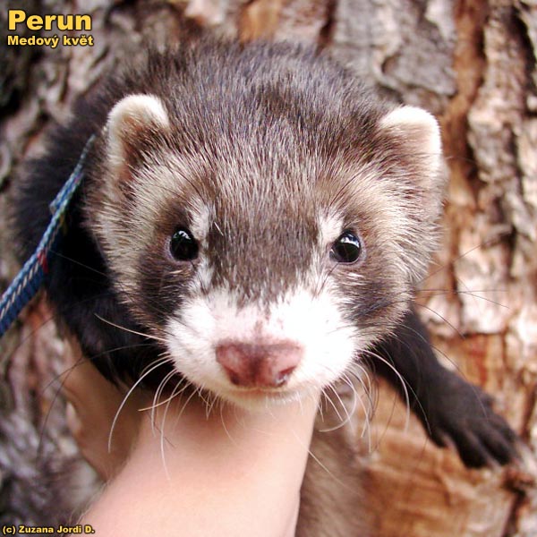 Maminka Peruna je Elfinora Medový květ (tchořovitá s ponokami) a tatínek je Matýsek Zríny (černotchořovitý).